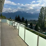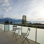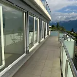 Die 1-Zimmer-Ferienwohnung Panoramic View With Garden Montreux ist 4 km vom Schloss Chillon entfernt gelegen. Die Apartments hat auch eine Terrasse mit Blick auf die Berge.